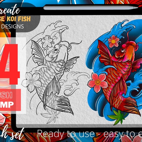 Koi Fish Tattoo Japan Tattoo Stencil Tattoo Stamp Etsy